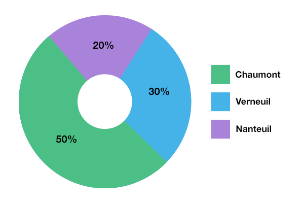 Répartion du nombre d'usines par ville en %